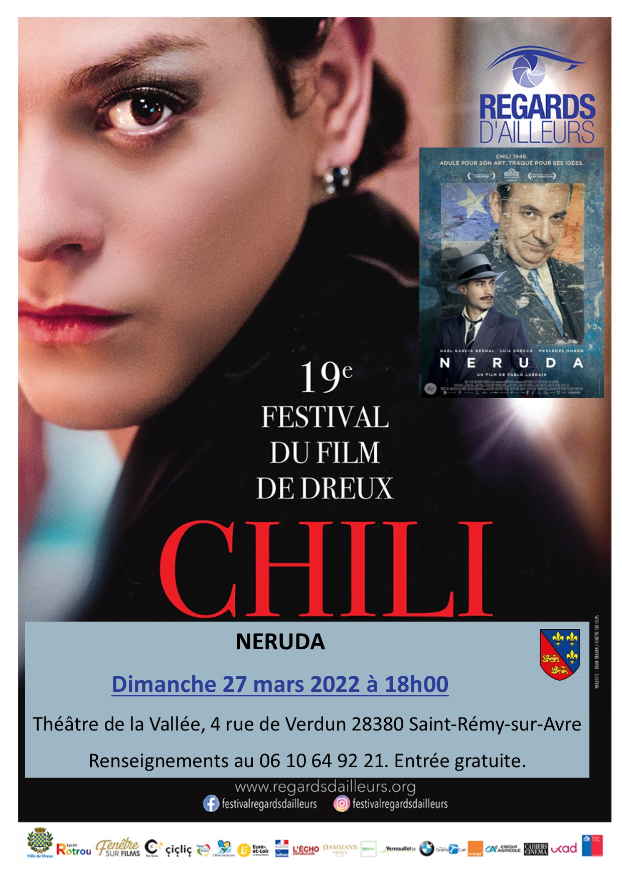 Dimanche 27 mars 2022 à 18h. .Cinéma. Festival Regards D'Ailleurs : Neruda. Entrée gratuite.