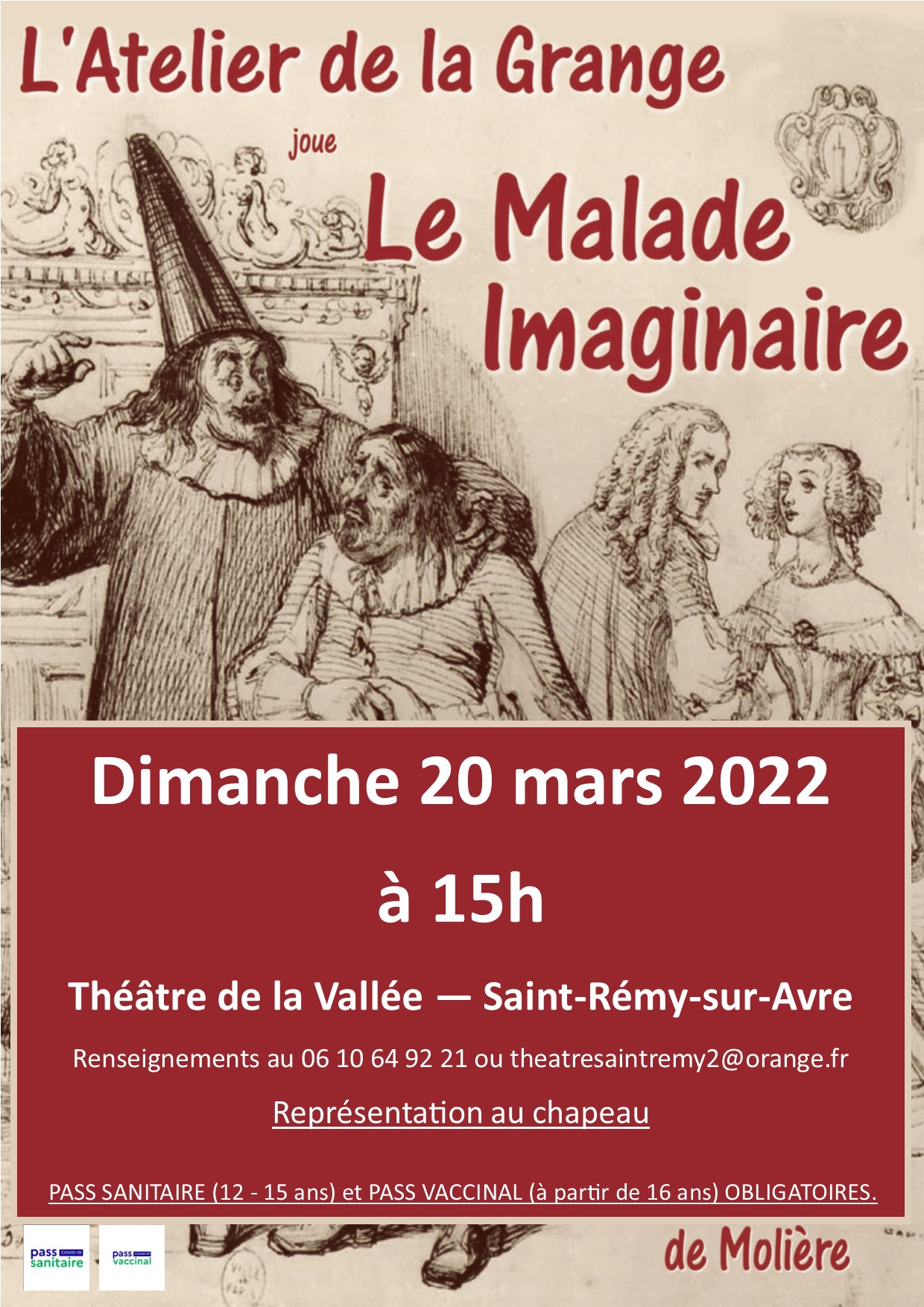 Dimanche 20 mars 2022 à 15h. Théâtre. Le Malade Imaginaire par L'Atelier de la Grange. Représentation au chapeau.