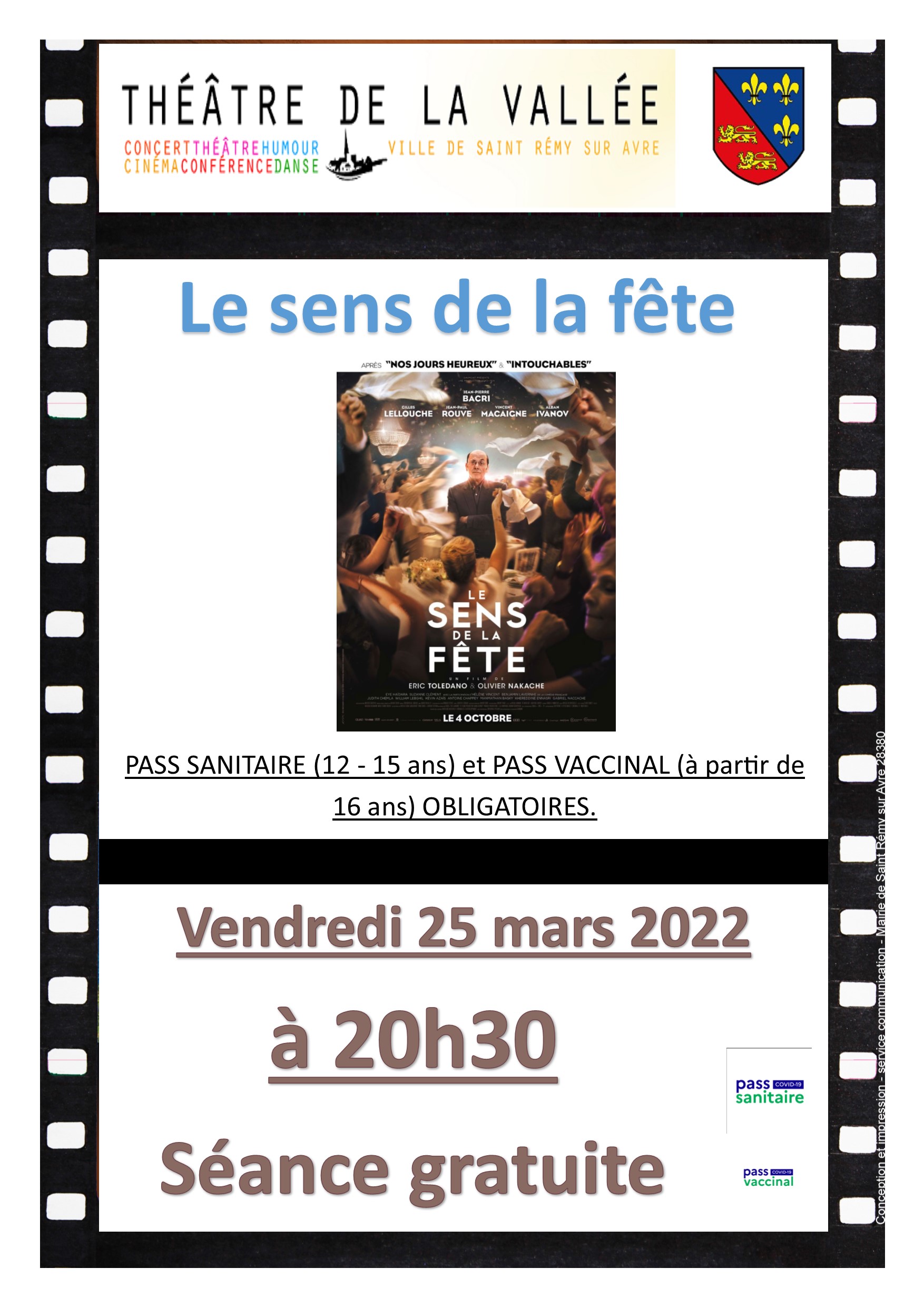Vendredi 25 mars 2022 à 20h30. Cinéma. Le sens de la fête. Entrée gratuite.